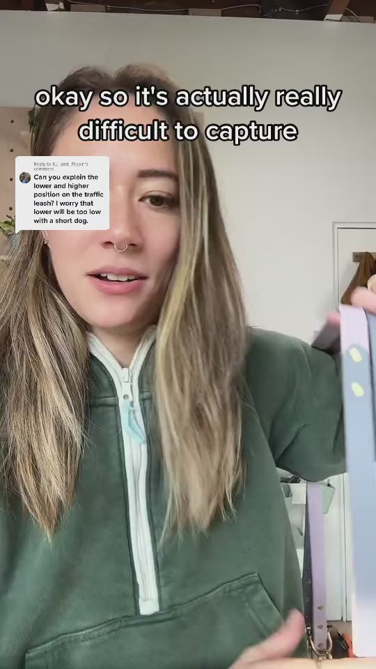 “I love the craftsmanship of this leash. It's so durable and feels good in my hand. The material is thick and durable. I finally got to use the clip handle the other day when I tied my dog off to the leg of a table. It was awesome not having to unhook her and wrap the leash through. The traffic handle is thoughtfully positioned. Because of how it's made, my dog's foot doesn't get caught in the traffic loop either if I drop the leash. It's awesome. The colors are awesome and the moon charm is a sweet little addition. It's so well made and feels luxurious. My hand doesn't slip or hurt if my dog starts pulling either. No rope burns! It's great!