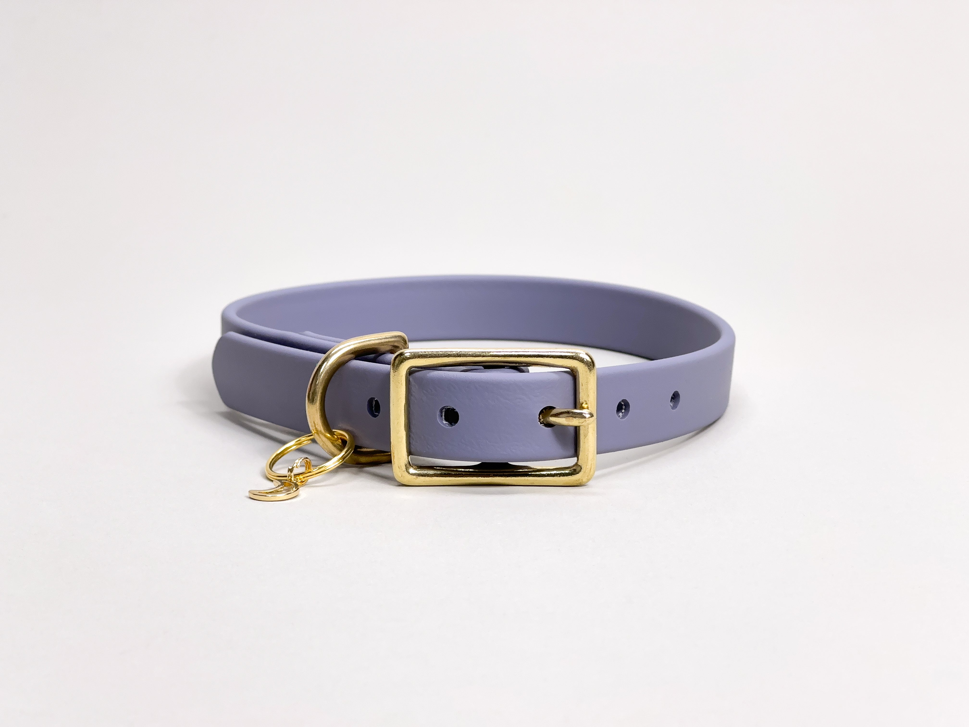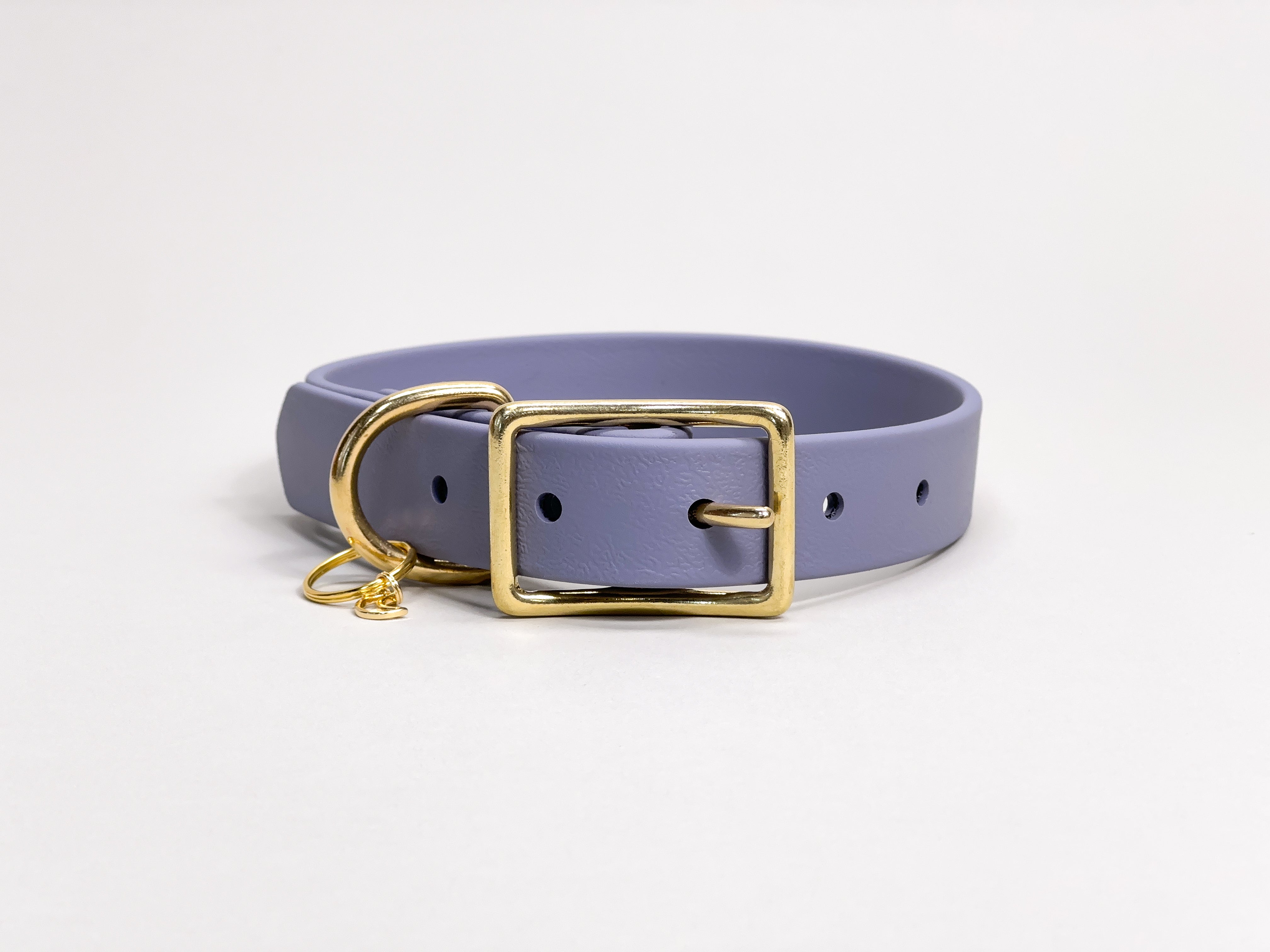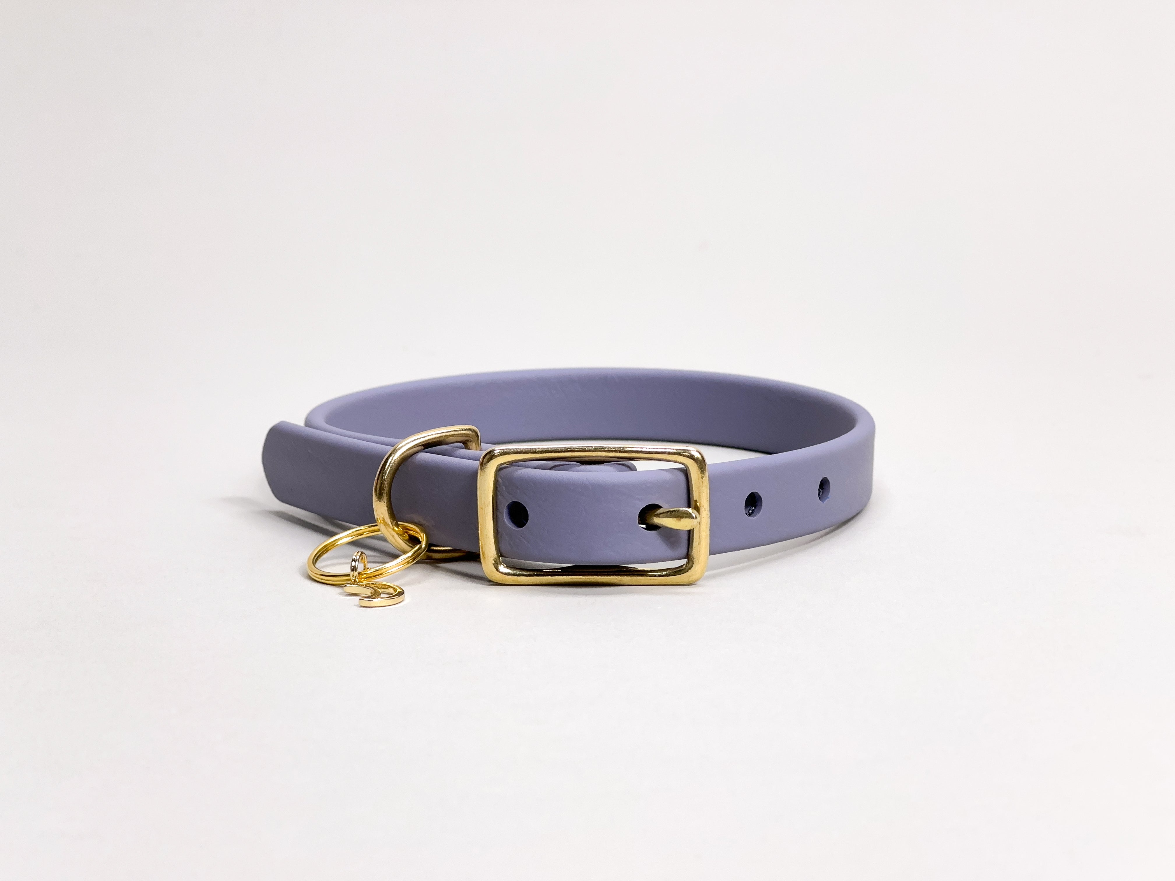 Our Classic Biothane Collar features a timeless buckle design. We use solid brass and chrome-plated solid brass hardware, which won't rust over time.
