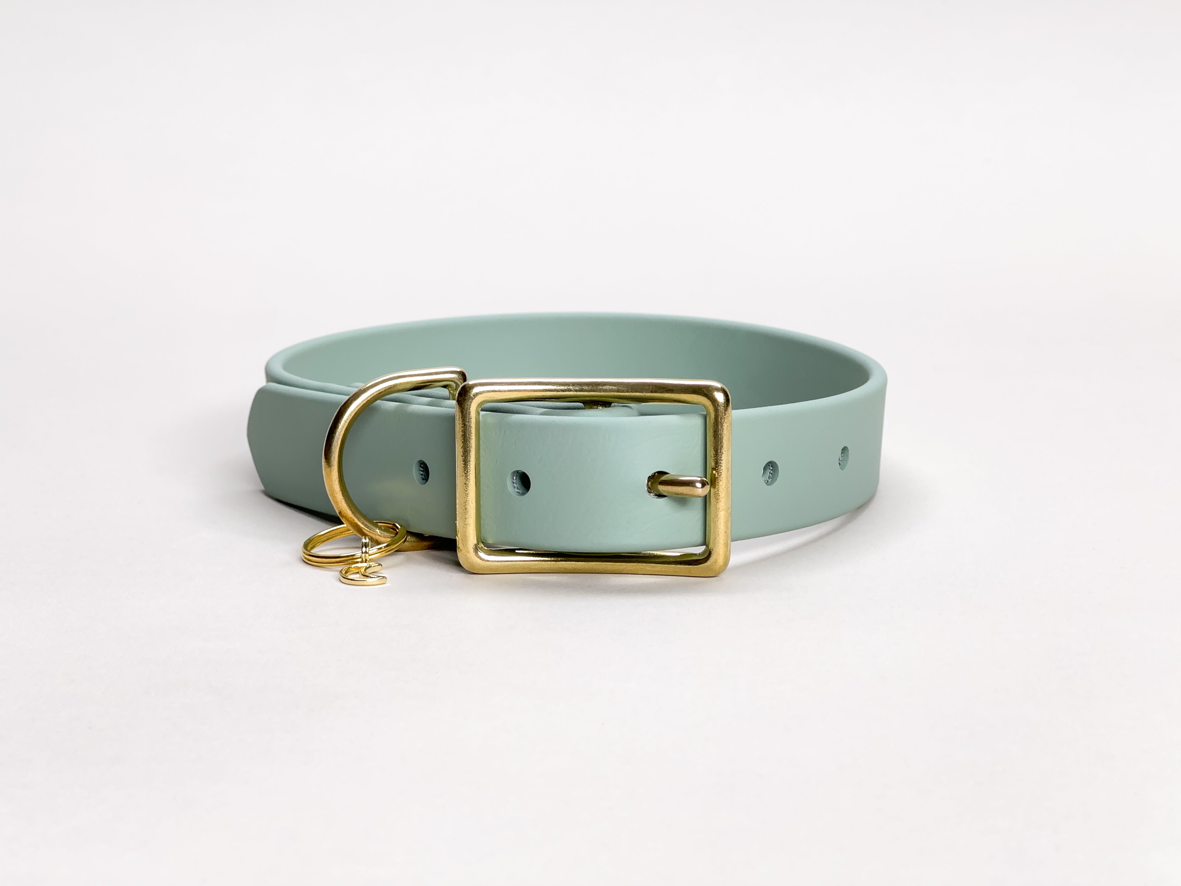 - 1” Classic Biothane Collar, brass hardware, colour: Sage, *you choose size* - 12 through 24