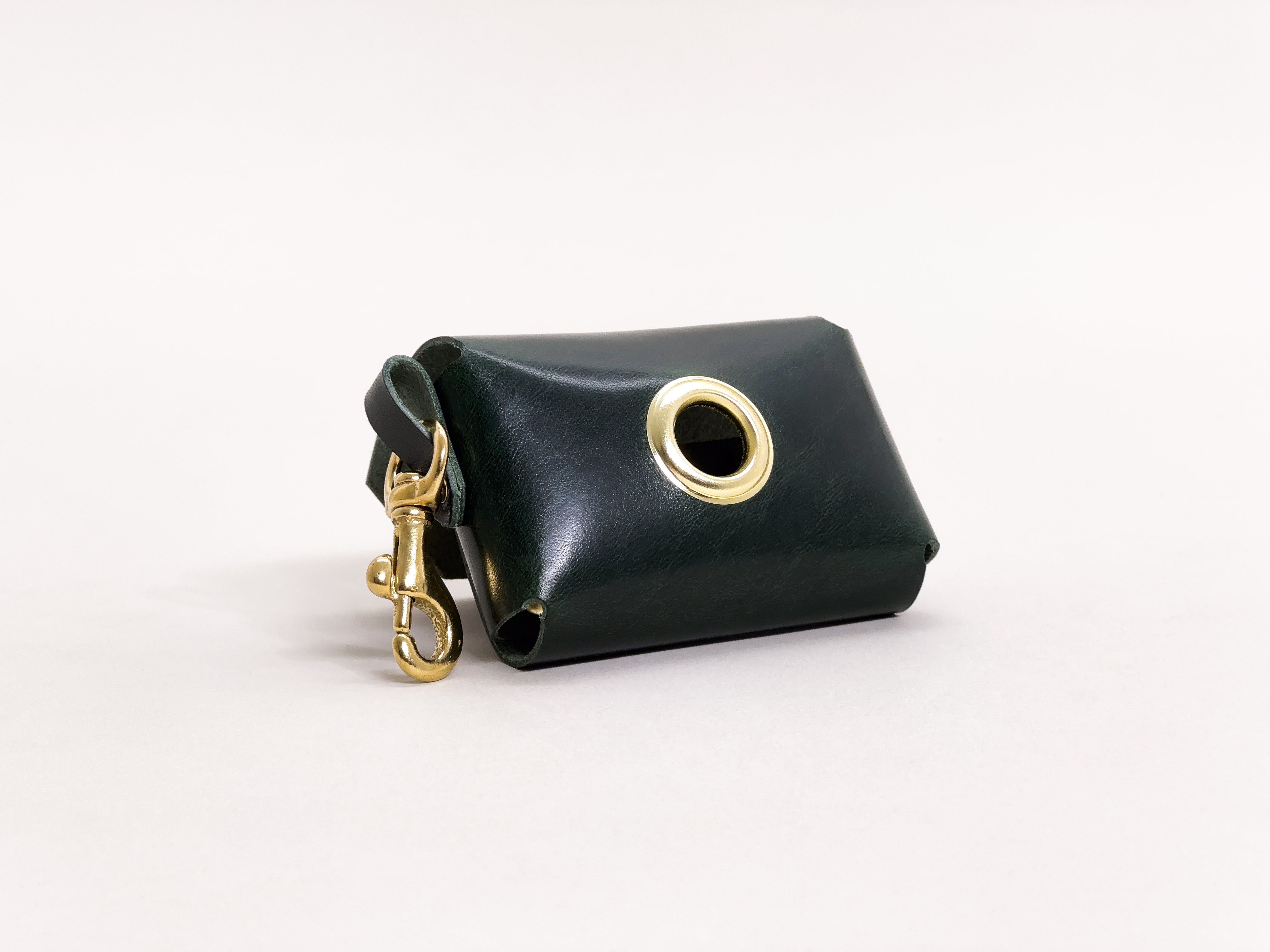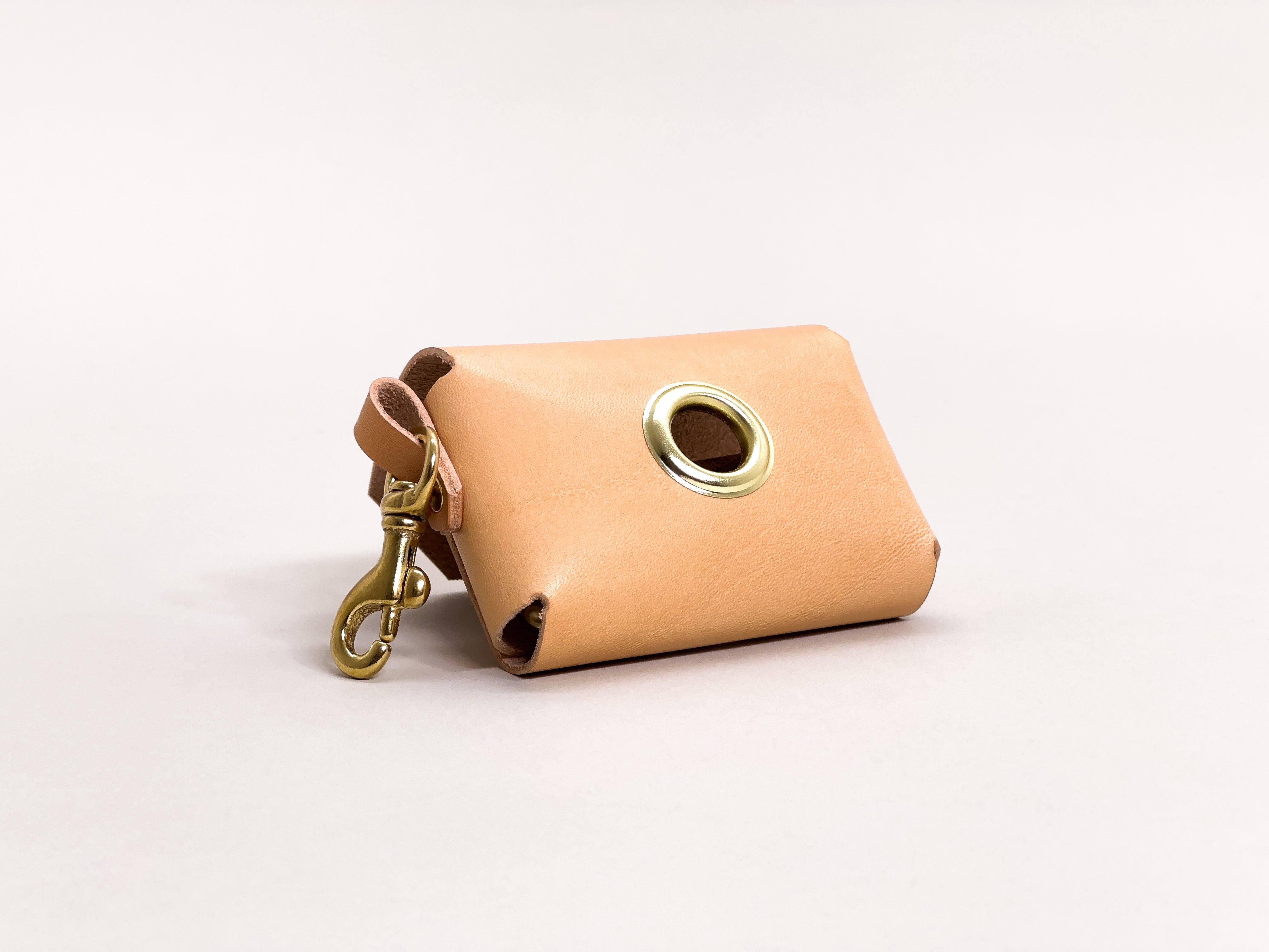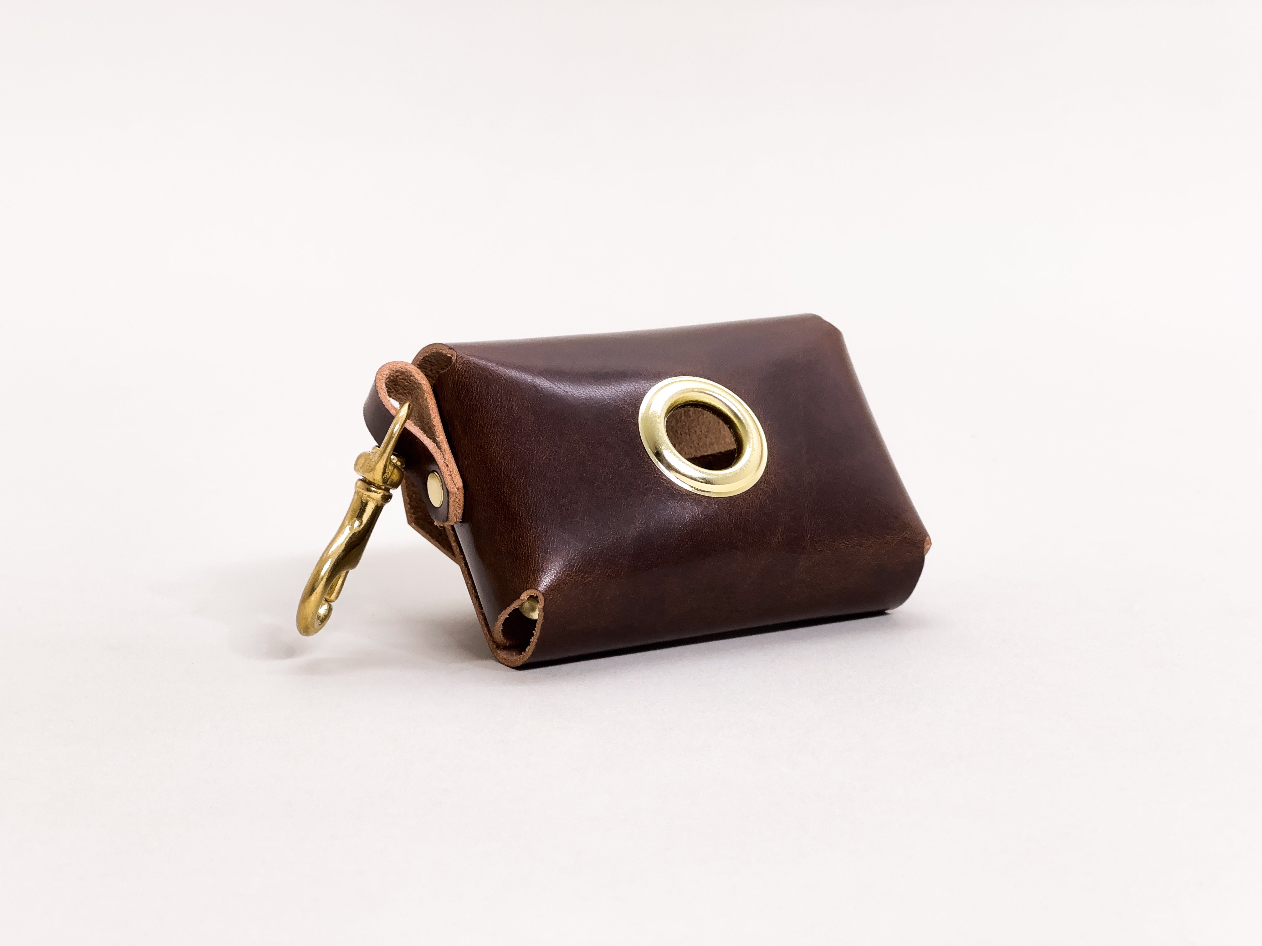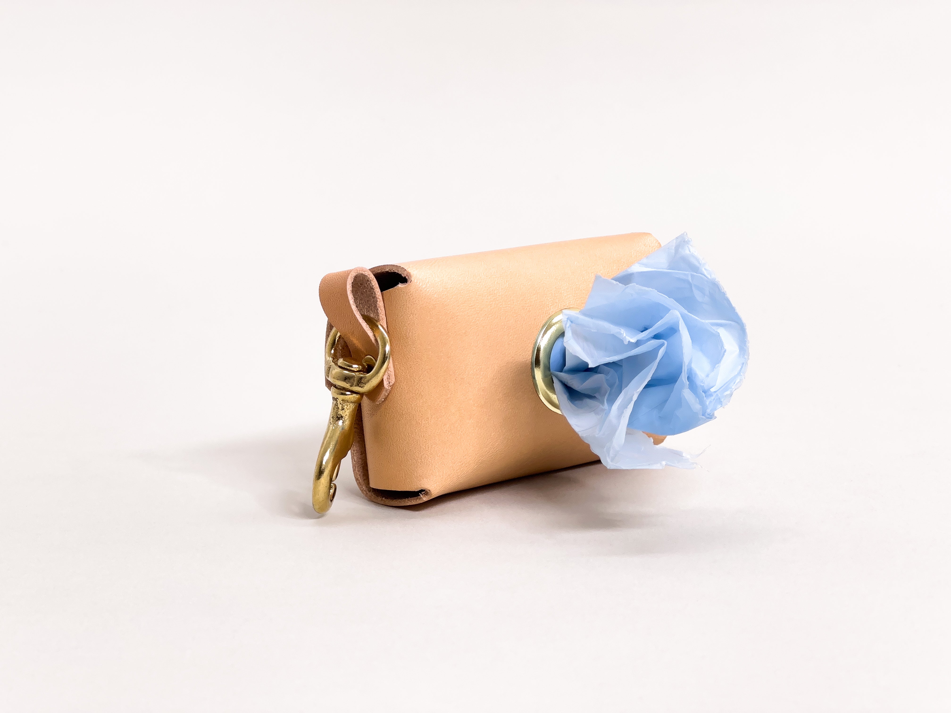 Our waste bag holders are finished with solid brass hardware and a Strange Tails stamp on the front flap.