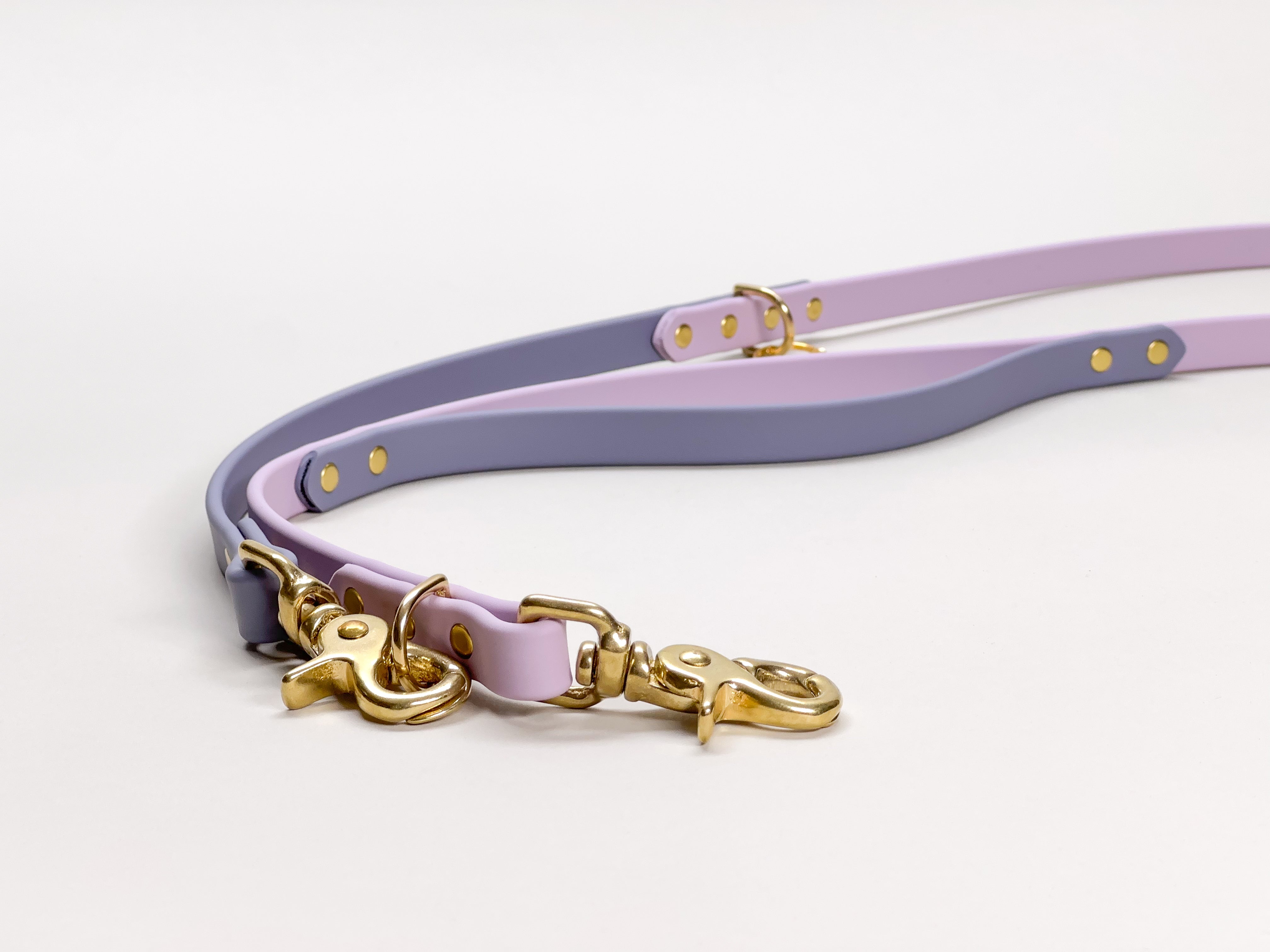 - 5/8” Traffic Handle Leash, brass hardware, 4ft length, main colour: Lilac, handle colour: Clay