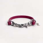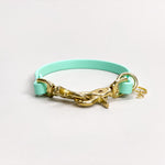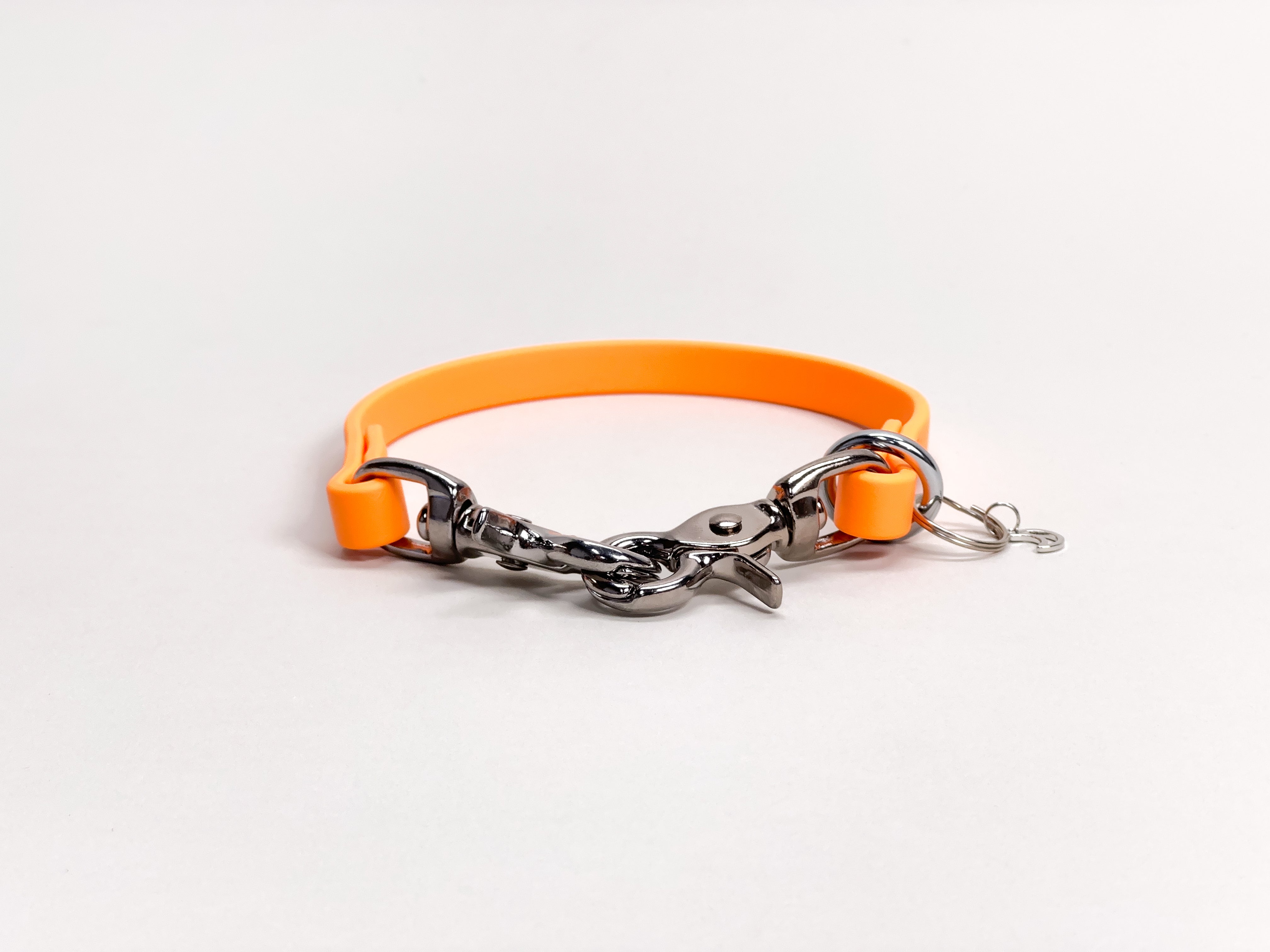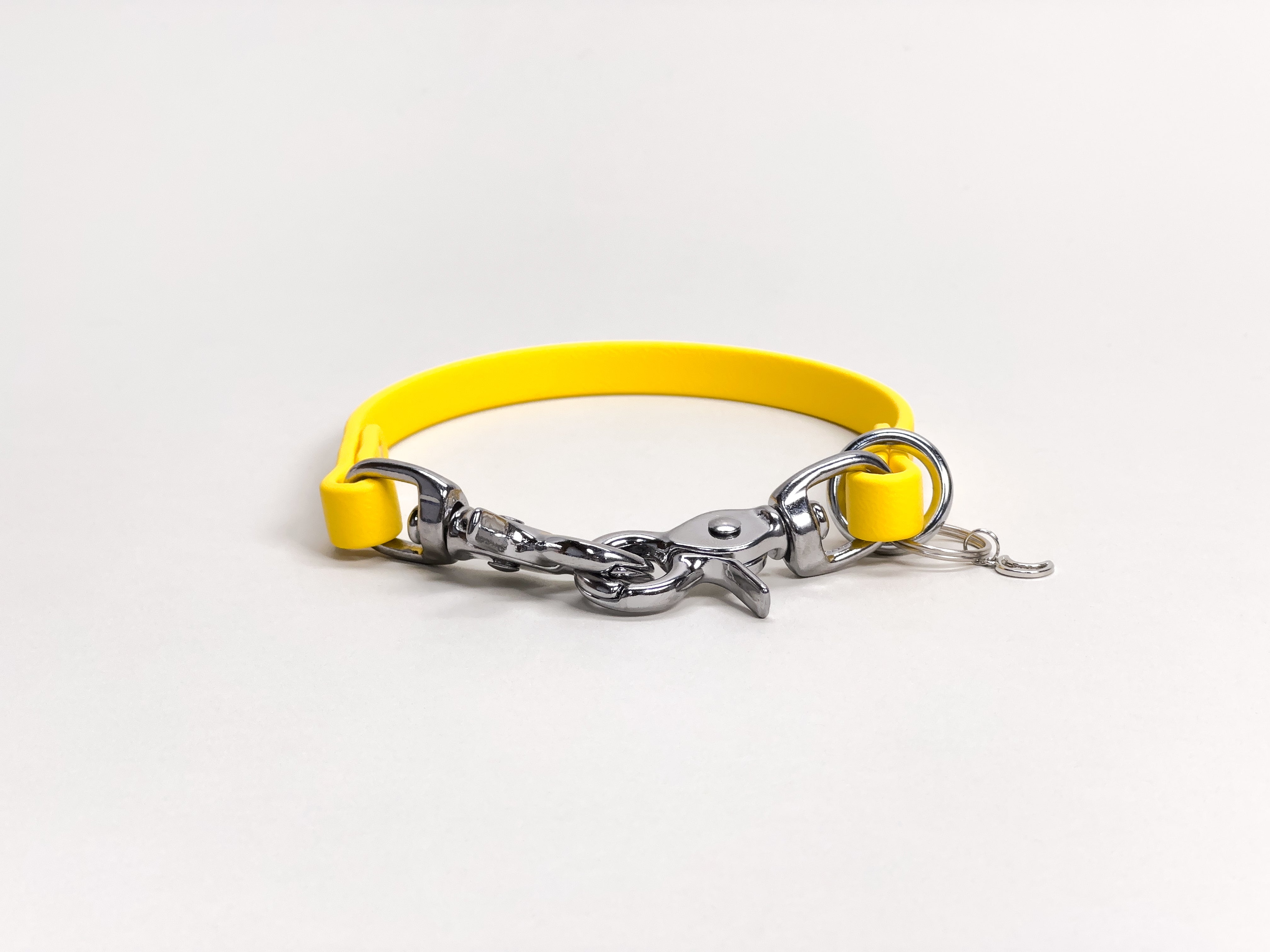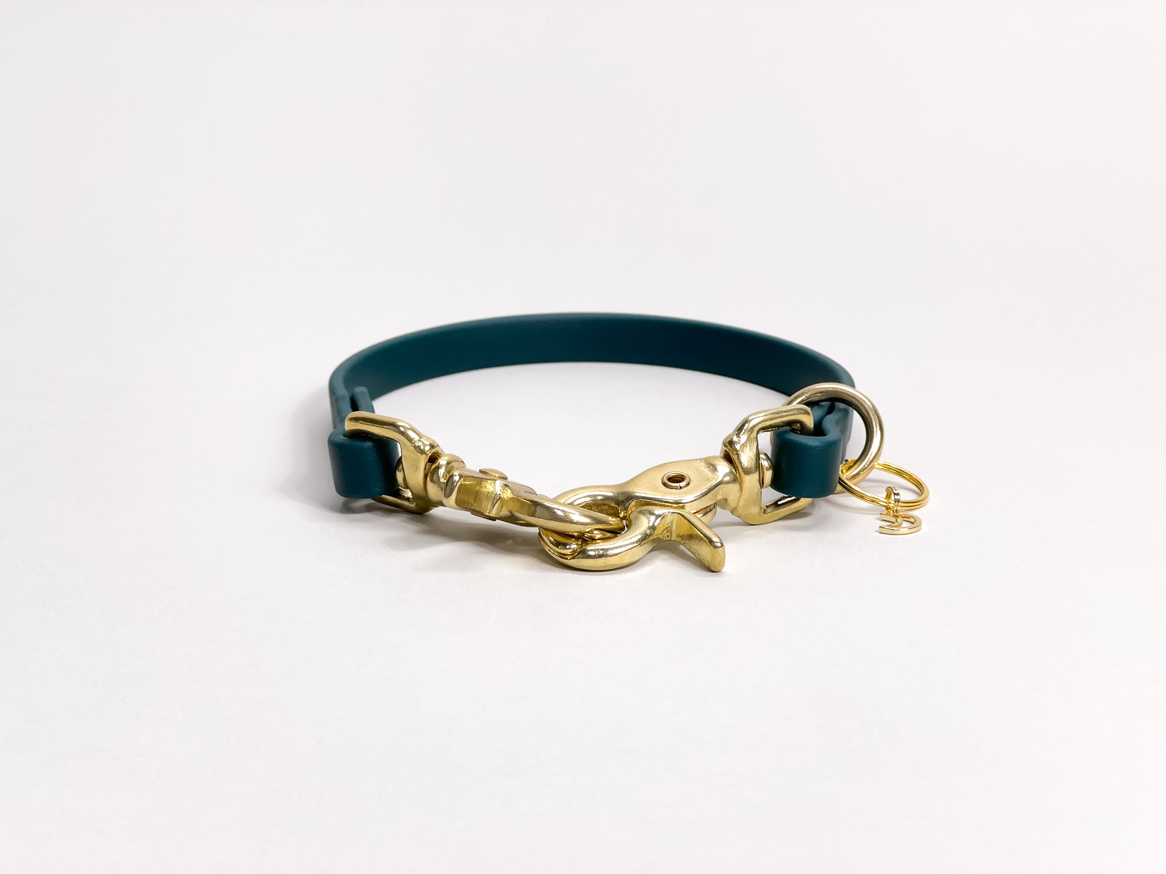 We use the "Super Heavy" Biothane for all of our leashes, handsfree adapters, classic collars and martingale collars which has a substantial and luxe feel to it. Our adjustable quick release collars use the "Standard" Biothane.