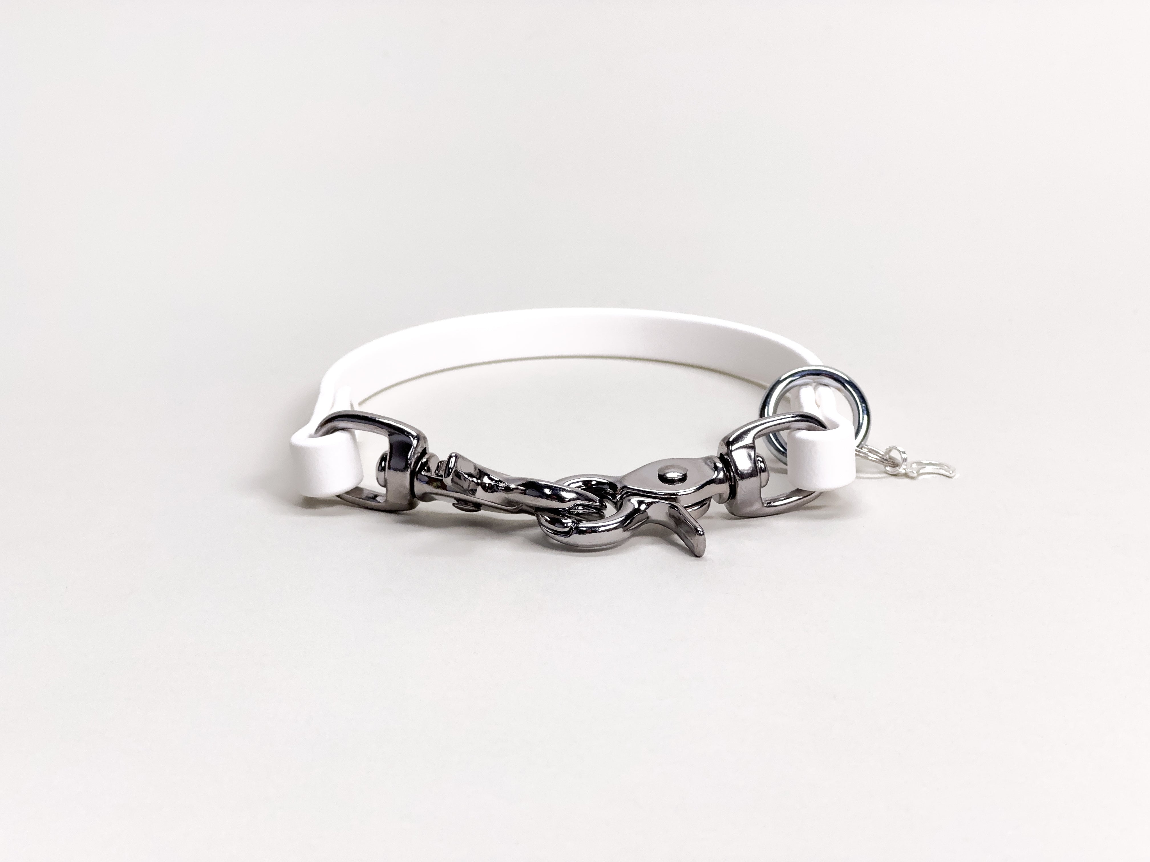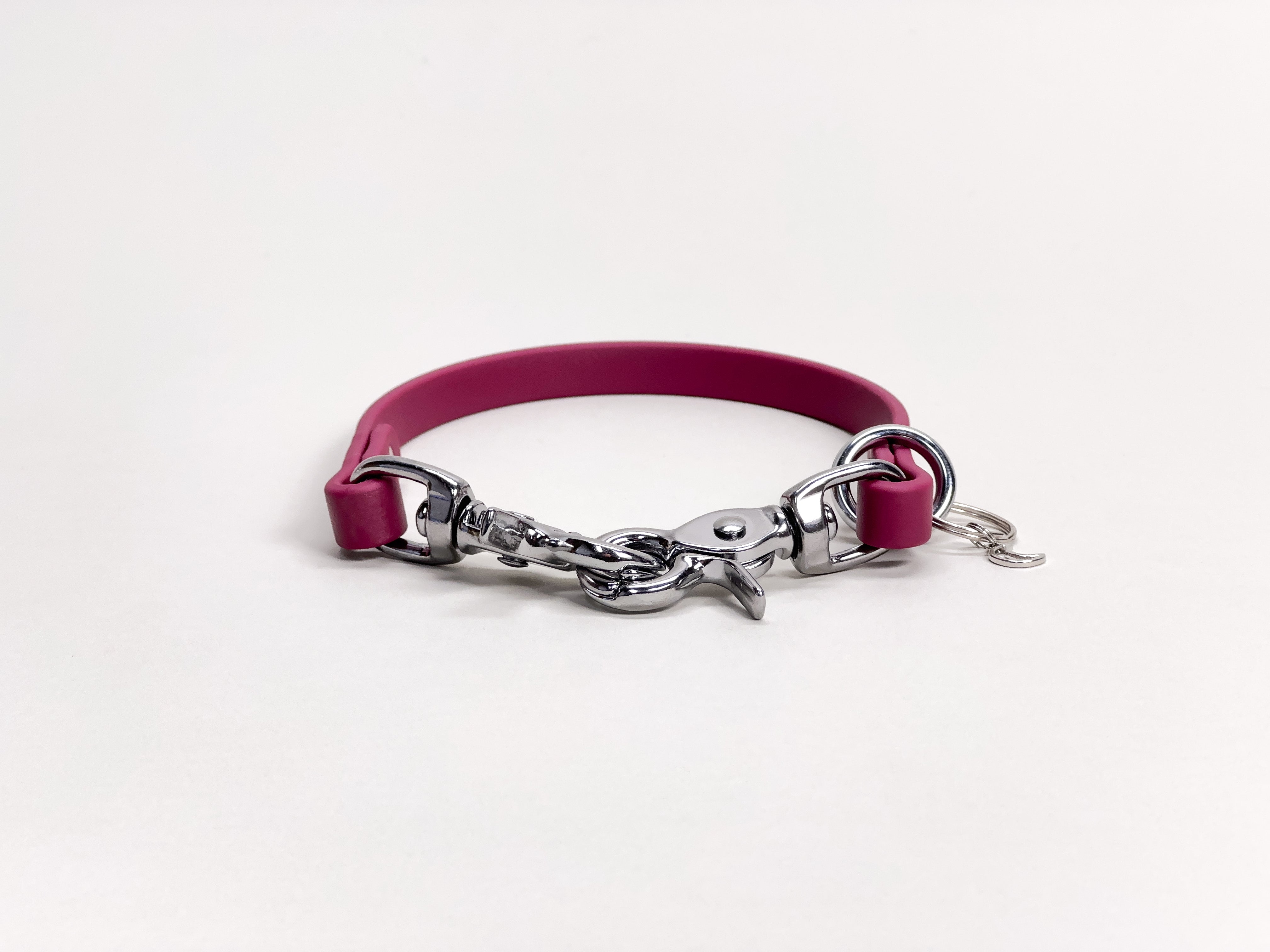While Biothane is easy to clean, it does still get dirty. Please keep in mind that lighter colours will show dirt and tarnish marks more easily, and will require more frequent cleaning to keep looking fresh!
