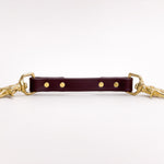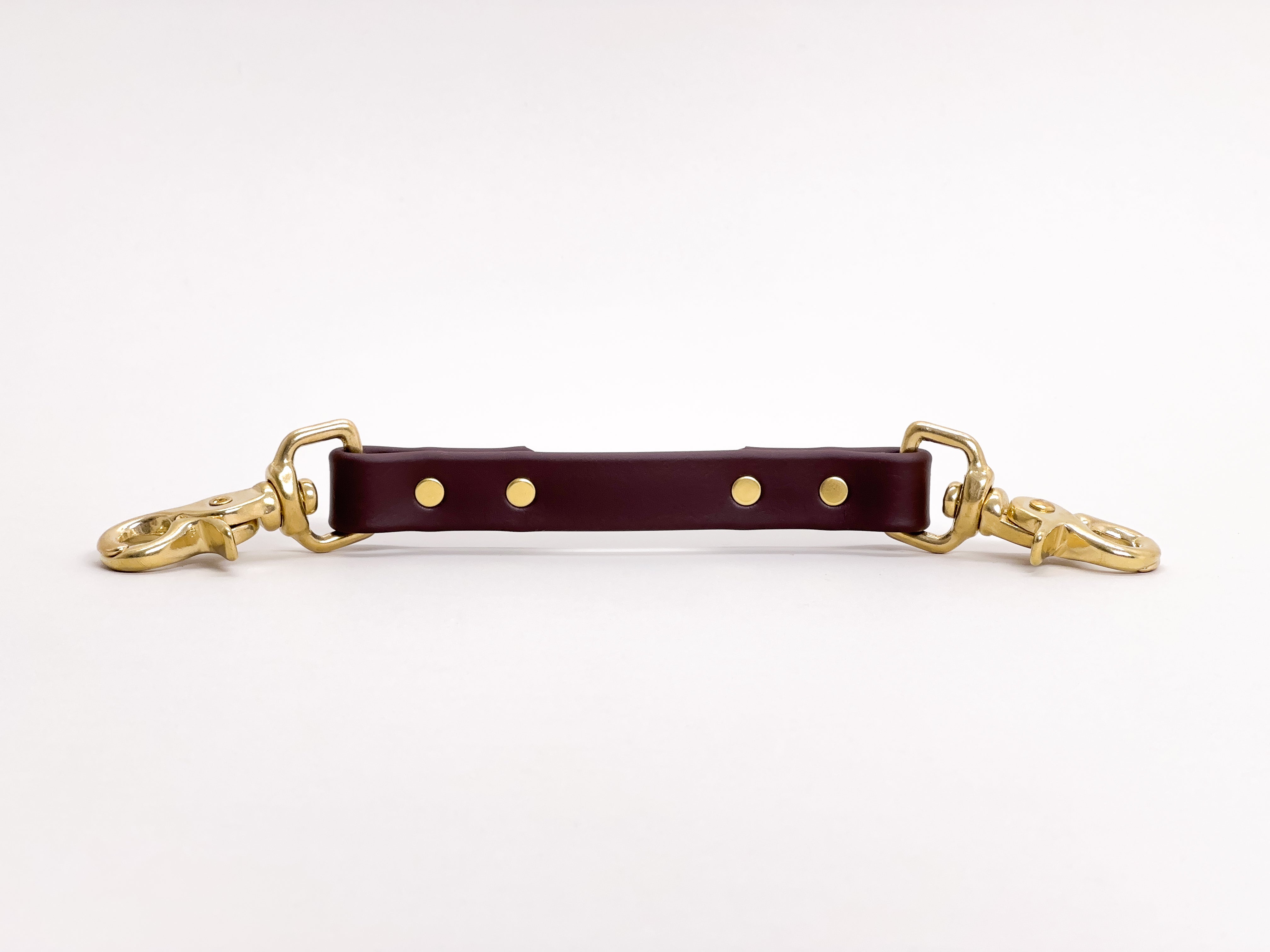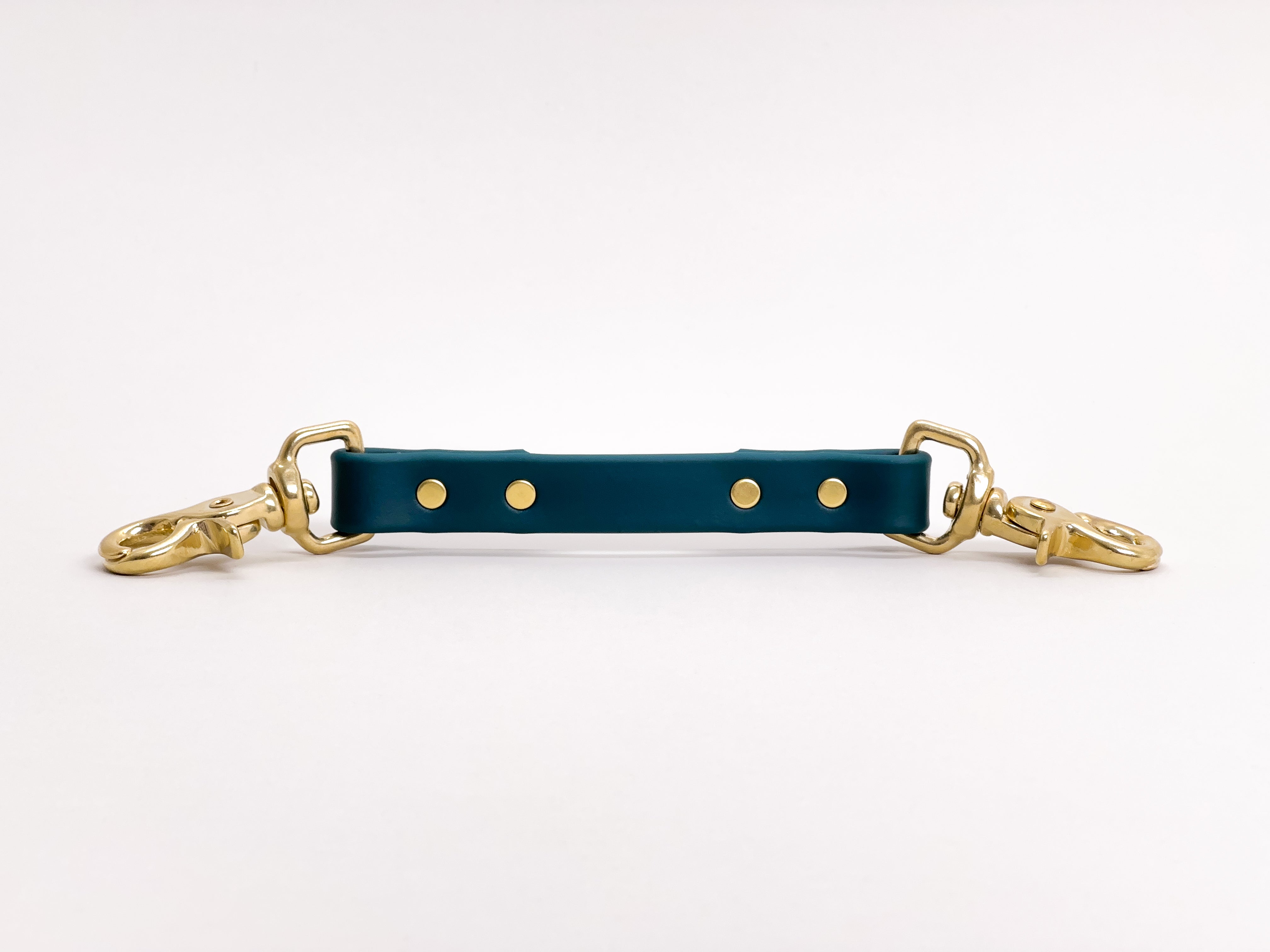 Solid brass hardware naturally oxidizes as it ages. It can leave tarnish marks against the biothane, especially on the lighter colours.