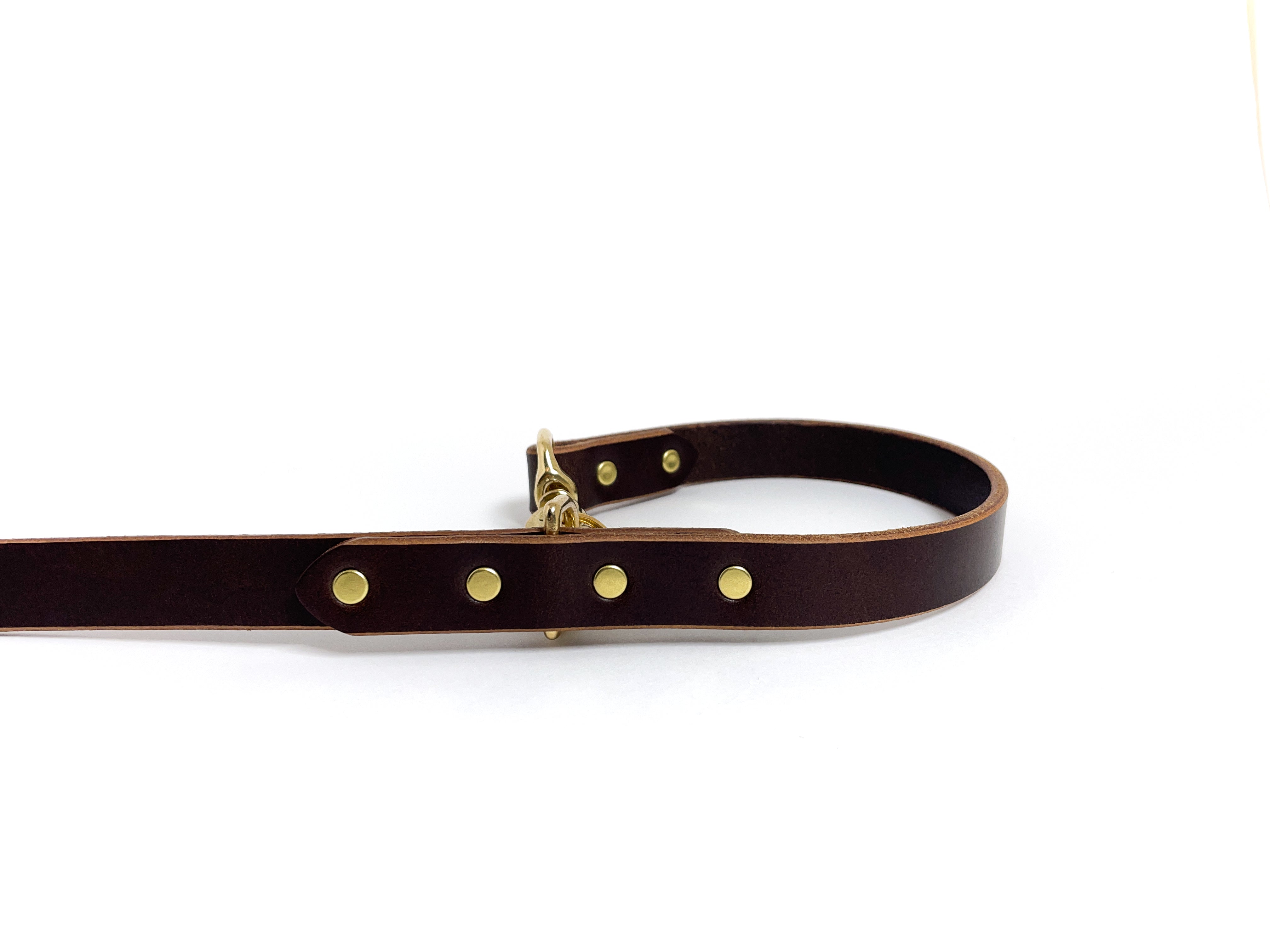 Every step of our leather working process is done by hand, including taking the extra time to bevel and burnish the edges of the strap. These are techniques that leave the cut edges of the leather shiny and smooth, making them very comfortable in your hands and against your dog's skin right out of the box. Before our leather products leave the studio, they are conditioned with mink oil for a boost of hydration.